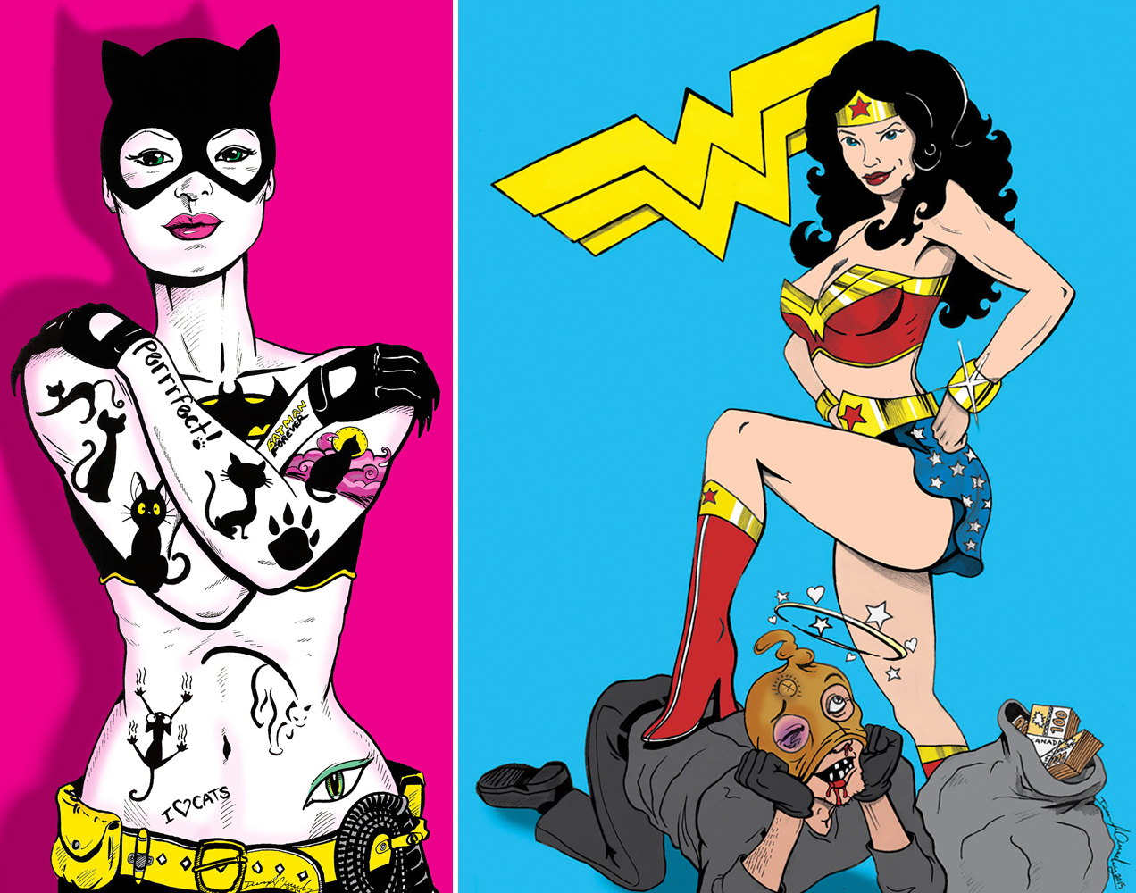 “Cat Woman” & “Wonder Woman” Commissioned Posters (Ink & Digital Colour)