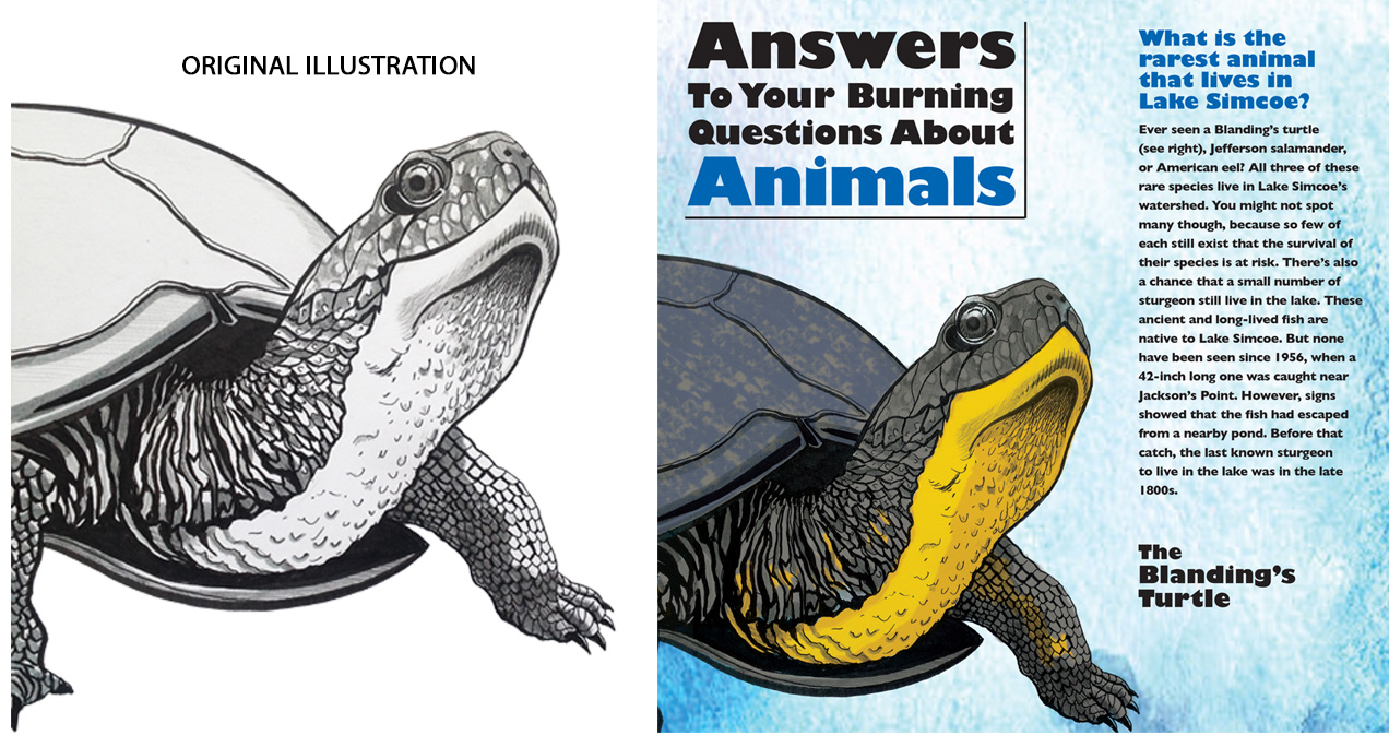 Turtle Illustration for “Do Fish Fart?” Children’s Book (Ink & Digital Colouring), (Client: Ontario Water Centre/ LOL)