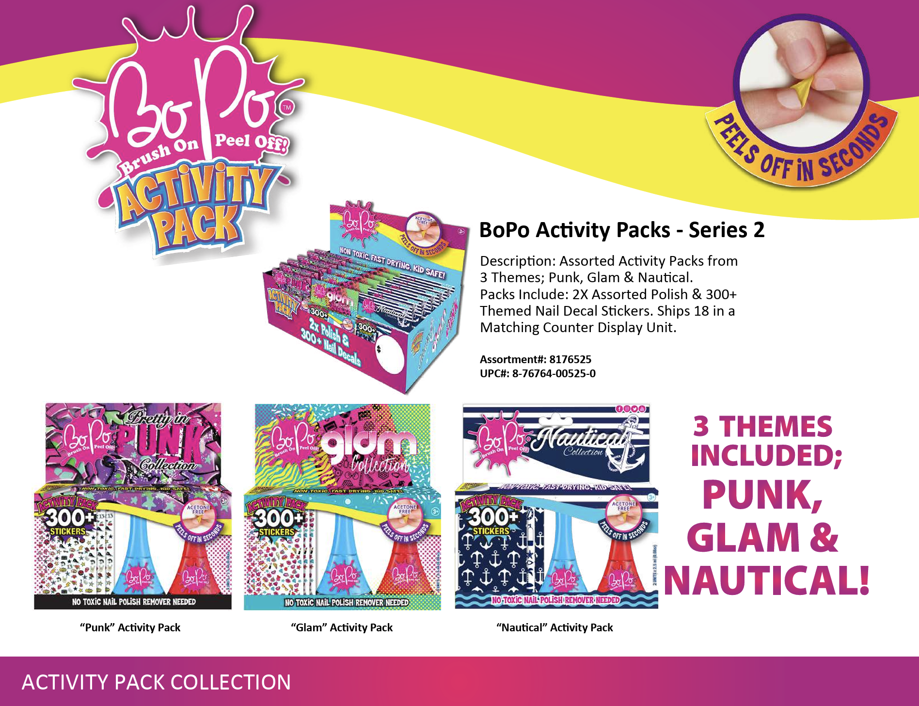 Designed and developed new branding for BoPo, the non-toxic nail polish including a full catalog line of themed BoPo activity packs which were produced and sold across the globe.