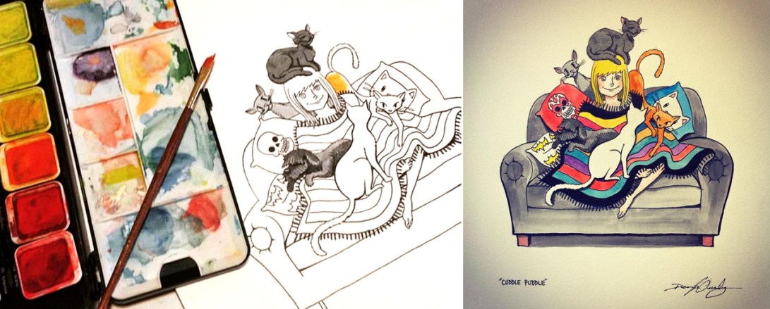 “Cuddle Puddle” Commission (Ink & Watercolour)