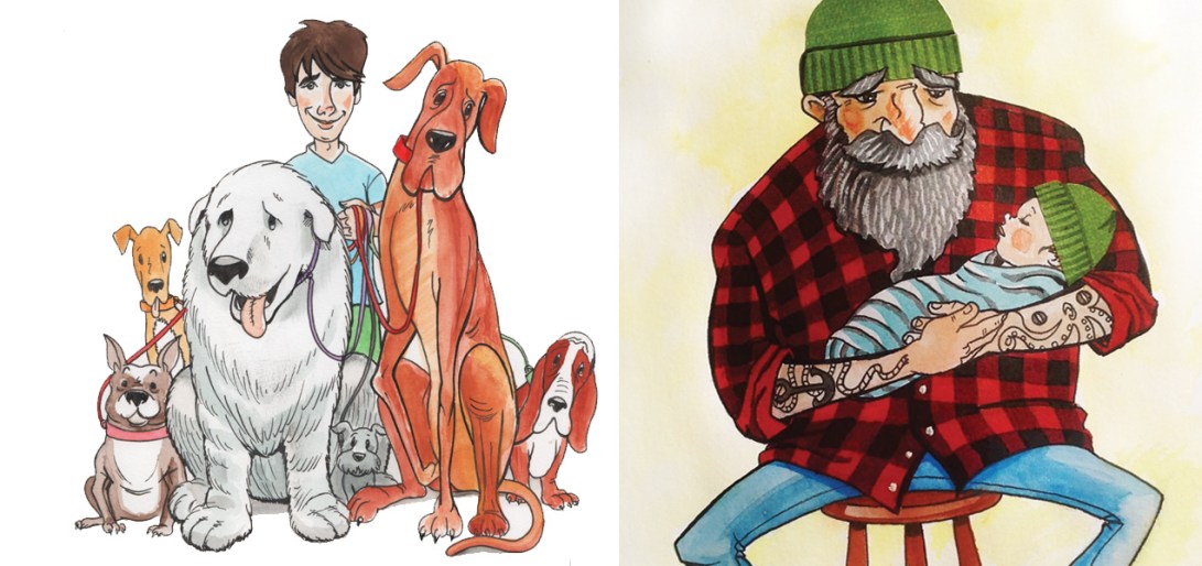 “DogWalker” Commissioned Advertising Image (Ink & Watercolour) & “Generations” Self-Directed (Ink, Gouache and Collage)
