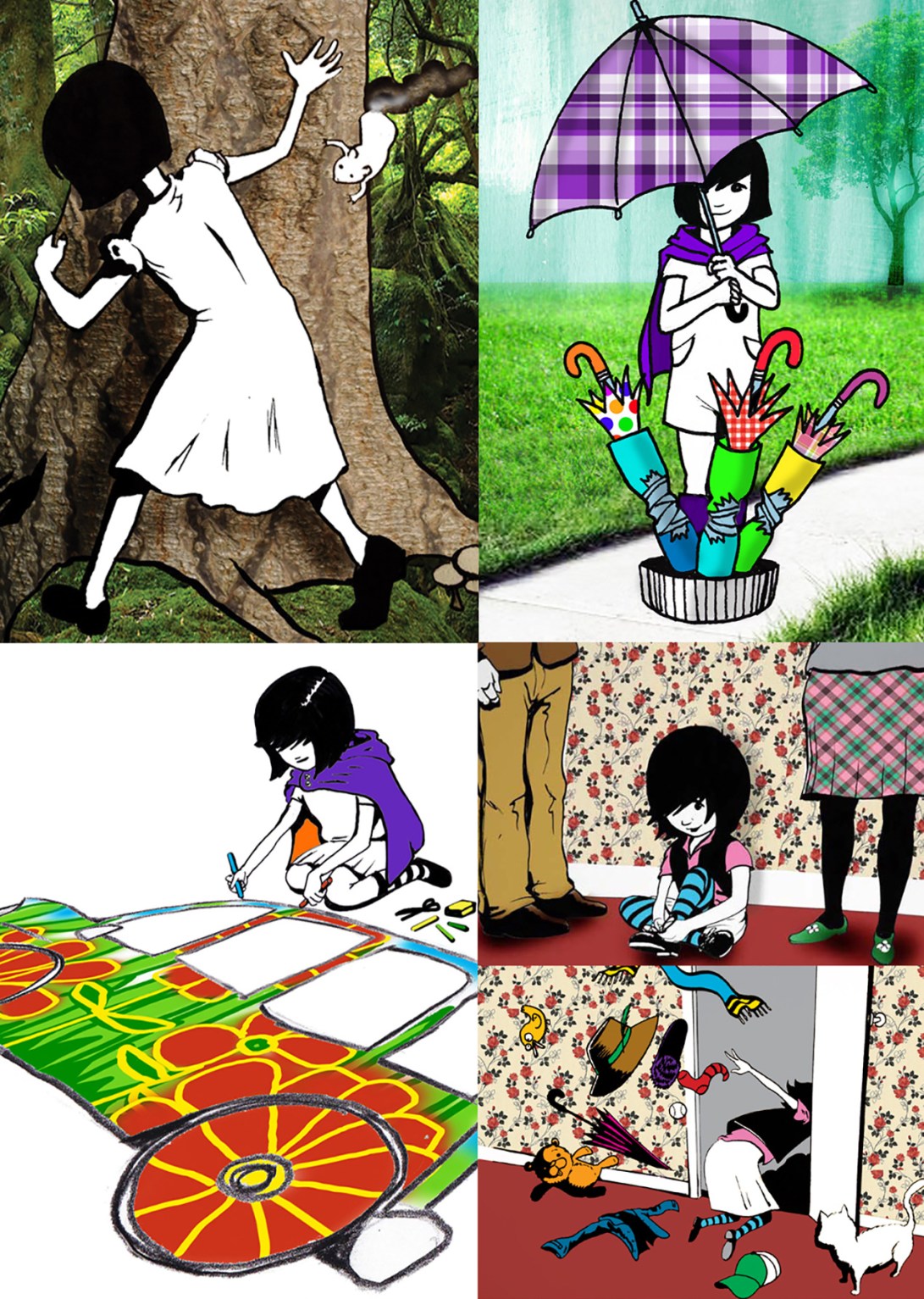 “World of Pia” Online Interactive Children’s Stories (Ink & Digital Colour/ Collage), (Client: Emerging Methods)