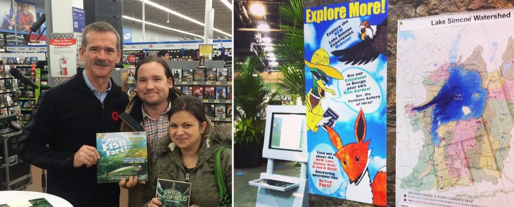 Supporter of “Do Fish Fart?”, Astronaut Chris Hadfield and “Do Fish Fart?” signage at the Toronto Home Show.