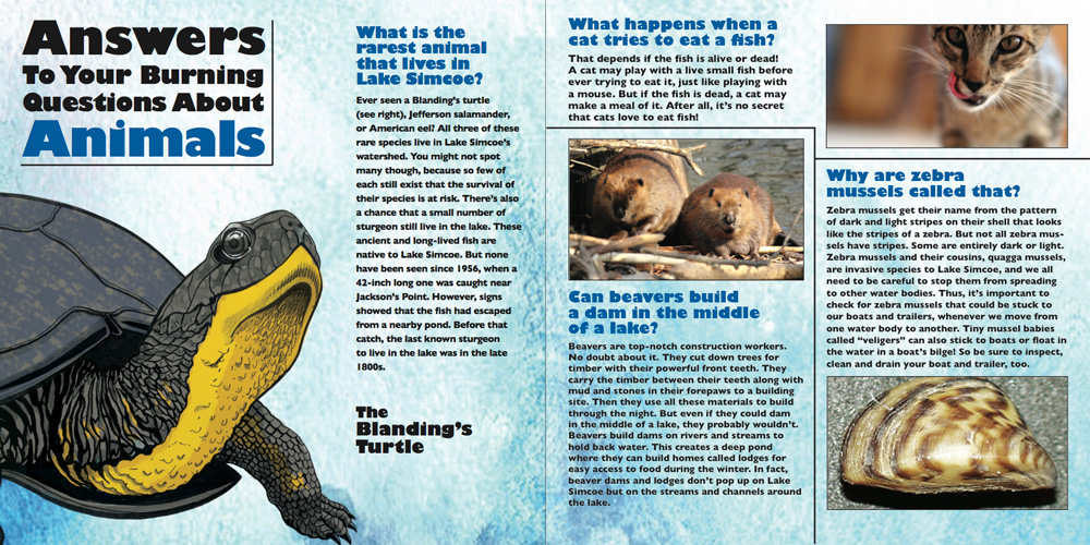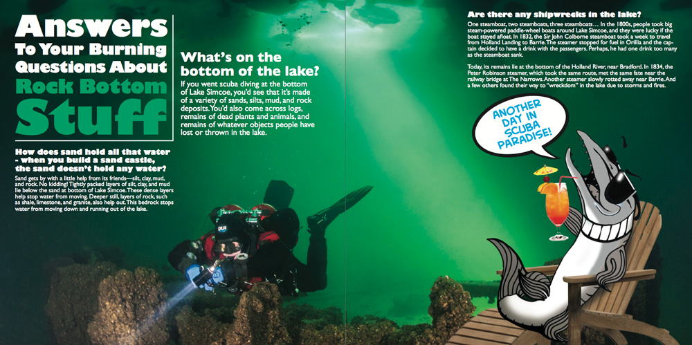 Created for the Ontario Water Centre, answering kids’ oddest questions about fresh water, lakes and fish. Through my Illustrations and book design I was able to help bring the Q&A text to life. The book won a slew of awards and was featured in various media, allowing it to raise the money needed for the development of a future non-profit project, “ClearWater Farm”. Published August 2015, and launched at the Lakes Simcoe Splash Festival. Republished by Firefly Books for mainstream bookstores April 2016.