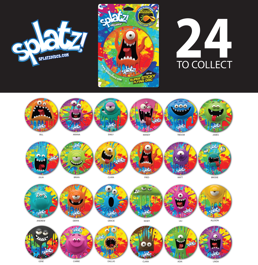The Splatz product line includes 24 – 5” discs, 8 – 8” discs and two games.